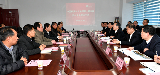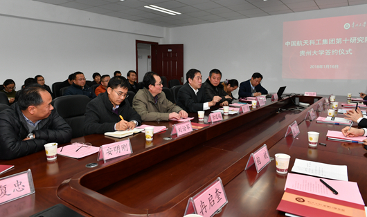 副校長金道超與航天十院副院長李君山簽訂了“中國航天科工集團(tuán)第十研究院——貴州大學(xué)人才培養(yǎng)合作協(xié)議”。