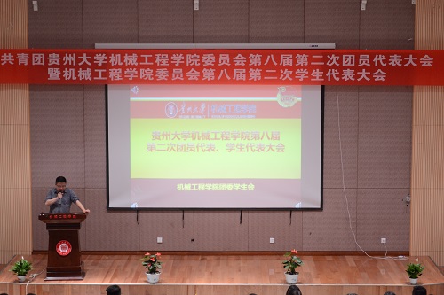 黨委副書記代祥社會上發(fā)言。他對我院團委學生會一年來取得的成績進行了簡要概述和表揚,就我院連續(xù)兩年榮獲貴州大學五四紅旗團委榮譽稱號表示肯定。他表示,我院學生在新時代下,肩上責任重大,機械乃國之重械,振國之法,要努力提高科學文化素養(yǎng)、政治素養(yǎng),勇于擔當,提高修養(yǎng),成為國之棟梁。