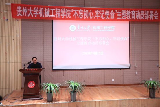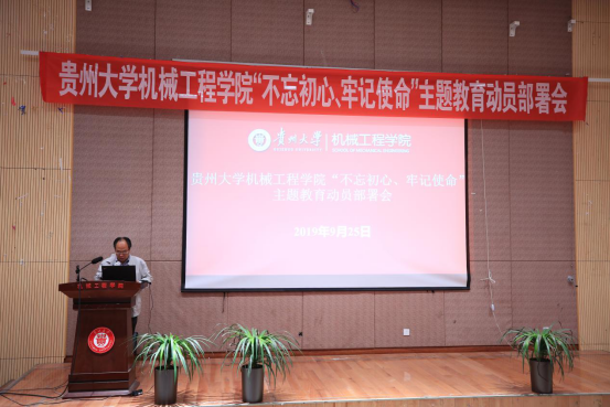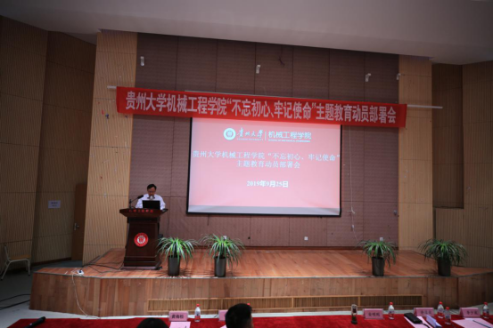 2019年9月25日,貴州大學機械工程學院黨委“不忘初心,牢記使命”主題教育部署會在機械樓圓形報告順利召開。校巡回指導小組四組組長許道云、成員李臣宇以及學院及現(xiàn)代制造重點實驗室在家處級領(lǐng)導干部、院黨委委員、各黨總支、黨支部委員、全體師生黨員參加了此次會議。會議由學院黨委院長李少波主持。