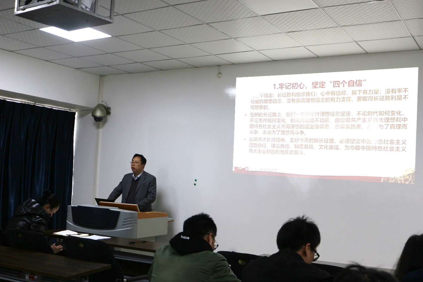 李少波院長進(jìn)行了“不忘初心、牢記使命,弘揚(yáng)長征精神,艱苦奮斗勇往直前,沖擊學(xué)科發(fā)展新高地”主題授課。他提出,我們黨員同志要不忘初心,在新的征程路上,弘揚(yáng)長征精神,積極擔(dān)當(dāng)作為。一是要牢記初心堅(jiān)定“四個(gè)自信”;二是要堅(jiān)持實(shí)事求是認(rèn)真踐行“三嚴(yán)三實(shí)”的作風(fēng);三是要發(fā)揚(yáng)無私無畏敢于擔(dān)當(dāng)?shù)挠⑿壑髁x;四是要忠實(shí)踐行宗旨和黨的群眾路線;五是要強(qiáng)化“四個(gè)意識(shí)”堅(jiān)決維護(hù)黨的團(tuán)結(jié)統(tǒng)一;六是要大力弘揚(yáng)艱苦奮斗勤儉節(jié)約的光榮傳統(tǒng);七是要始終堅(jiān)持中國共產(chǎn)黨的領(lǐng)導(dǎo)。新時(shí)代開啟新征程,新征程呼喚新?lián)?dāng)新作為。我們要以高度的政治責(zé)任感和歷史使命感,抓好擔(dān)當(dāng)作為的落實(shí)落地;要弘揚(yáng)長征精神,艱苦奮斗勇往直前,追求一流,沖擊學(xué)科發(fā)展新高地。