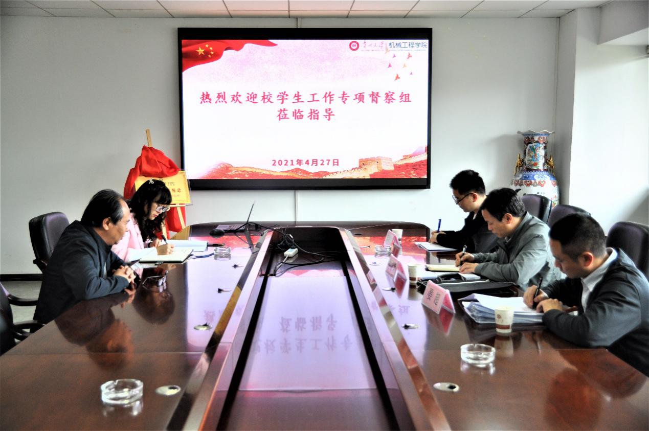 機(jī)械工程網(wǎng)站訊(記者 李曉成|攝影 鄒醒佳)根據(jù)貴州大學(xué)《關(guān)于開展學(xué)生工作專項(xiàng)督查的通知》要求,貴州大學(xué)督查組于2021年4月27日到機(jī)械工程學(xué)院開展輔導(dǎo)員、班主任工作履職情況的專項(xiàng)督查。機(jī)械工程學(xué)院于中午1點(diǎn)在機(jī)械樓518舉行了在校學(xué)生工作專項(xiàng)督查工作座談會(huì),組長由建筑與城市規(guī)劃學(xué)院黨委副書記趙家君擔(dān)任,成員是建筑與城市規(guī)劃學(xué)院學(xué)生科科長晏超和校學(xué)生處老師李成龍,機(jī)械工程學(xué)院黨委書記安明剛、黨委副書記廖燁、學(xué)生科輔導(dǎo)員、各年級班主任出席會(huì)議。