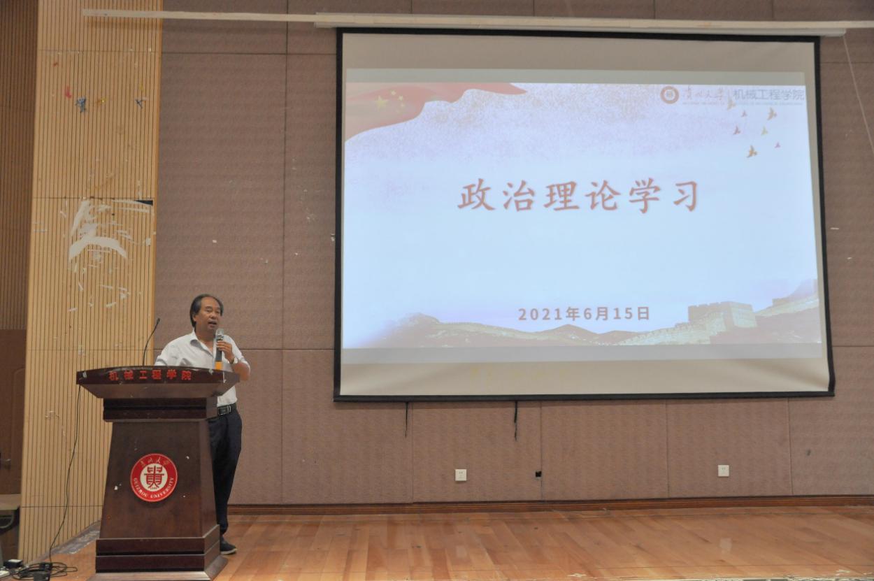 機械工程網站訊(記者 鄒醒佳|攝影 鄒醒佳)貴州大學機械工程學院于2021年6月15日中午在機械樓圓形報告廳開展了教職工政治理論學習大會,機械工程學院院長李少波、黨委副書記廖燁、副院長何鋒、楊勤出席會議,全院教職工參加會議。會議由安明剛主持。