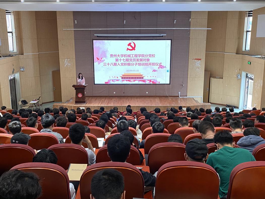 機(jī)械工程網(wǎng)站訊(記者 徐悅洋|攝影 吳雪、鄧子航)4月11日中午,貴州大學(xué)機(jī)械工程學(xué)院分黨校在機(jī)械樓圓形報(bào)告廳舉行了第十七期黨員發(fā)展對(duì)象、三十八期入黨積極分子培訓(xùn)班開(kāi)班儀式。學(xué)院黨委書(shū)記滕召華、副書(shū)記廖燁出席會(huì)議,黨政辦、學(xué)生科、現(xiàn)代制造技術(shù)教育部重點(diǎn)實(shí)驗(yàn)室相關(guān)老師及全體發(fā)展對(duì)象和入黨積極分子參加會(huì)議,會(huì)議由學(xué)生科趙麗芳老師主持。