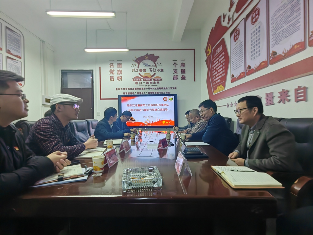 12月13日,貴州大學(xué)黨委正處級(jí)組織員董蔚然攜我支部支委成員與材料與冶金學(xué)院高分子材料與工程教研室教工黨支部開展黨建交流。材料與冶金學(xué)院黨委書記劉劍、正處級(jí)組織員熊玉竹以及高分子材料與工程教研室教工黨支部全體黨員參加活動(dòng)?;顒?dòng)由全國(guó)高校“雙帶頭人”教師黨支部書記工作室負(fù)責(zé)人、高分子材料與工程教研室教工黨支部書記謝海波主持。