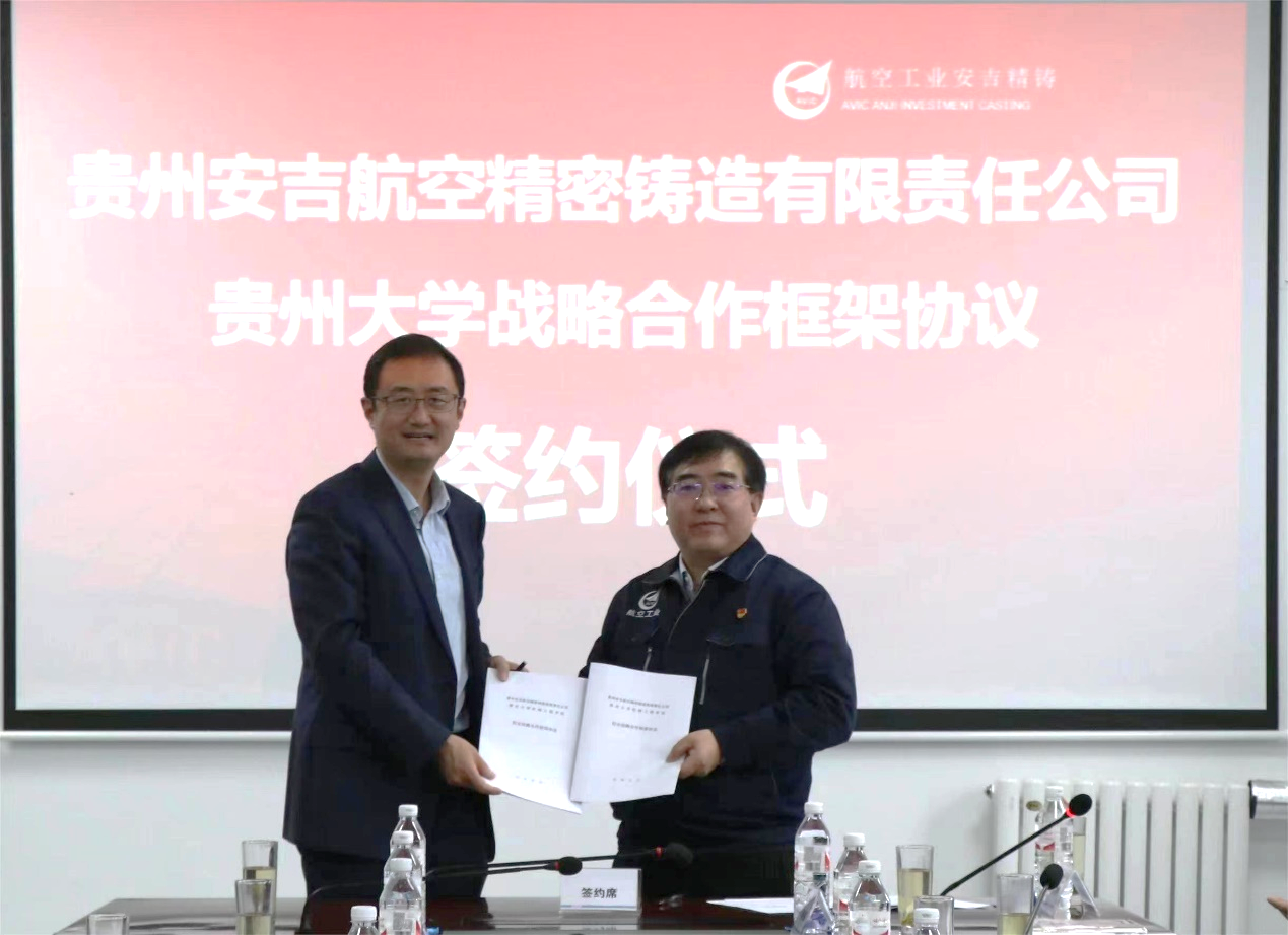 在會議致辭環(huán)節(jié),貴州省工業(yè)和信息化廳調(diào)研員楊娟女士,貴州省機械工程學會副理事長、貴州大學機械工程學院院長趙津先生和貴州省安吉航空精密鑄造有限公司黨委書記、董事長張建義先生分別發(fā)表熱情洋溢的致辭,為會議拉開了序幕。同時,貴州安吉航空精密鑄造有限公司與貴州大學簽署了戰(zhàn)略合作協(xié)議,為貴州省鑄造行業(yè)的合作與發(fā)展注入新動力。