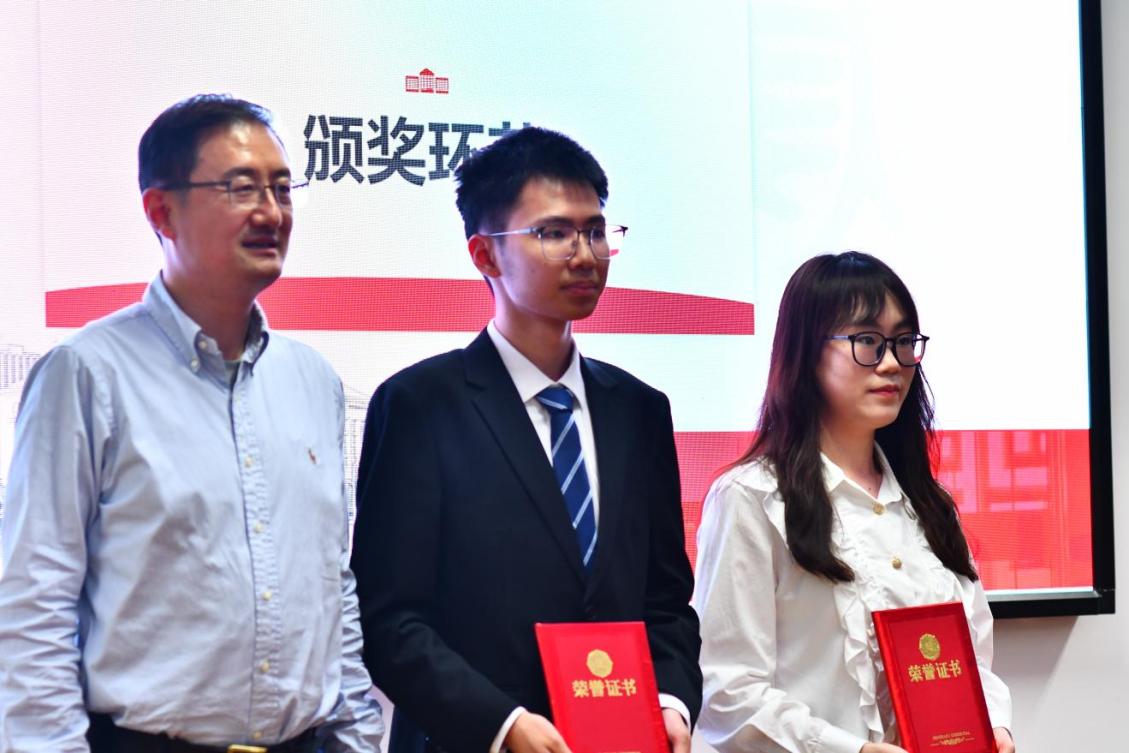 最后,領(lǐng)導(dǎo)為獲獎(jiǎng)的同學(xué)頒發(fā)證書(shū)并合影留戀。