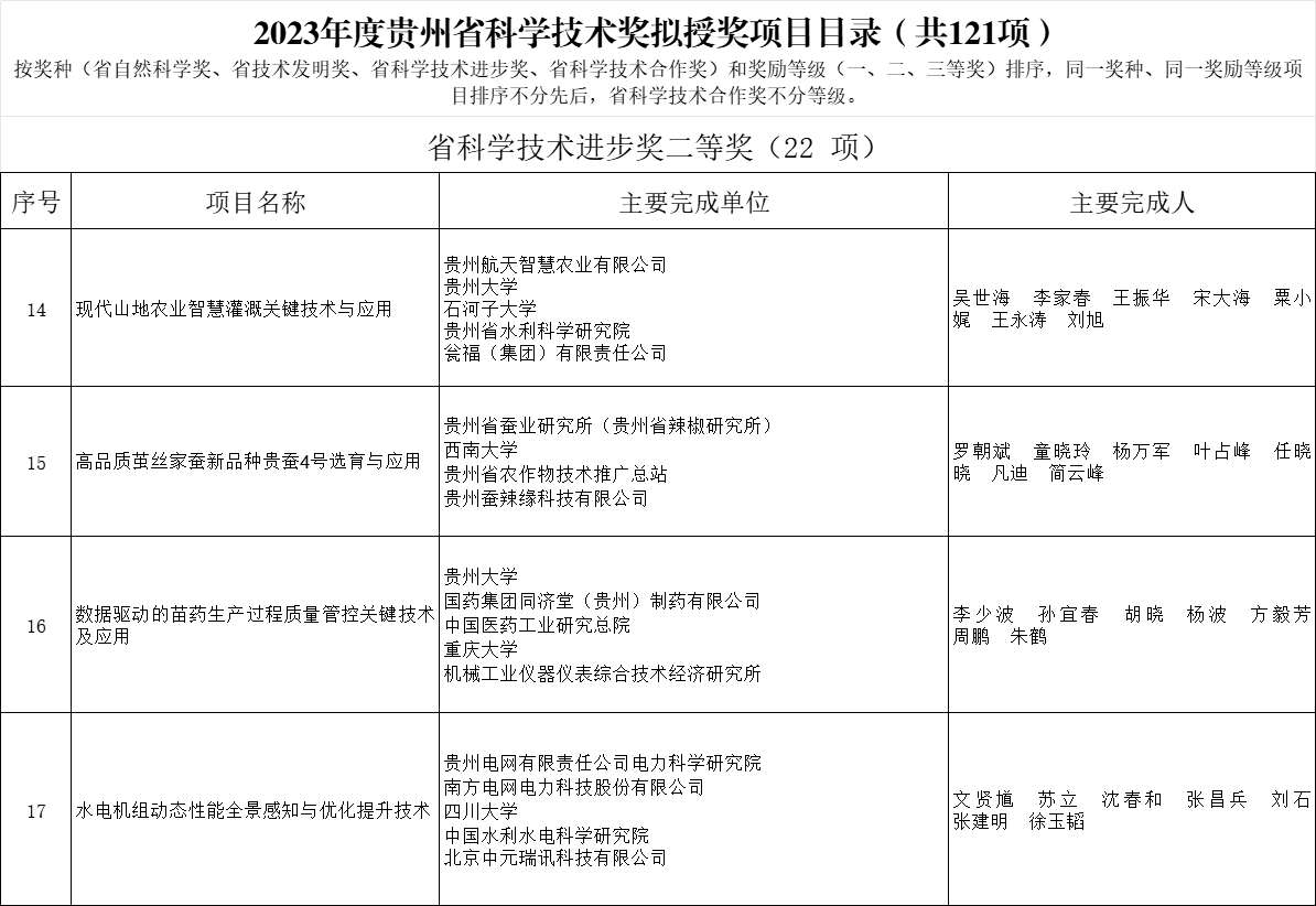 2024年3月,2023年度貴州省科技進步獎擬授獎項目公示發(fā)布,我支部書記周鵬同志所在團隊項目“數(shù)據(jù)驅(qū)動的苗藥生產(chǎn)過程質(zhì)量管控關鍵技術及應用”獲貴州省科技進步二等獎(周鵬排名第六)。多年來,周鵬所在團隊與國藥集團同濟堂(貴州)制藥有限公司展開了深入而持久的合作,一同申報并完成了工信部智能制造新模式應用項目——中藥制劑全流程智能制造新模式應用?;谠擁椖康某晒嵤?,項目成果獲2022年度教育部科技進步二等獎1項,并獲得中國國際大數(shù)據(jù)產(chǎn)業(yè)博覽會2023優(yōu)秀科技成果、貴州省十大優(yōu)秀科技成果等榮譽。