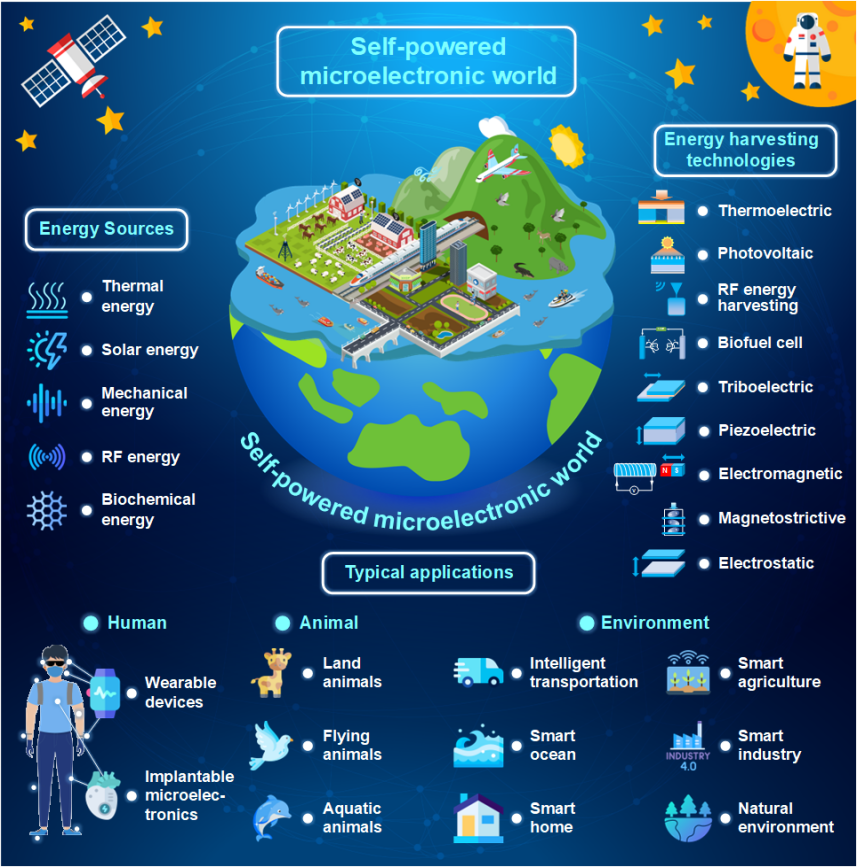 人工智能和物聯(lián)網(wǎng)正在推動(dòng)基于自供電技術(shù)的微電子器件的快速發(fā)展,深刻影響著世界的發(fā)展進(jìn)程。本文全面回顧了自供電微電子領(lǐng)域的最新進(jìn)展、挑戰(zhàn)和未來發(fā)展方向。綜述了人體可穿戴設(shè)備、動(dòng)物可穿戴設(shè)備和環(huán)境監(jiān)測(cè)傳感器的總體研究進(jìn)展。此外,本文還詳細(xì)概述了可用于自供電微電子的環(huán)境微能源類別,以及能量收集技術(shù)的原理和特征。從應(yīng)用角度出發(fā),全面總結(jié)了自供電微電子技術(shù)在人體可穿戴設(shè)備(眼鏡、助聽器、口罩、背包、手表、腕帶、手套、外骨骼系統(tǒng)、鞋襪)、動(dòng)物可穿戴設(shè)備(陸地、飛行、水生)、環(huán)境監(jiān)測(cè)傳感(智能交通、智能海洋、智能家居、智能農(nóng)業(yè)、智能工業(yè)、以及自然環(huán)境監(jiān)測(cè))。最后,針對(duì)自供電微電子器件的不足,提出了該領(lǐng)域的研究空白和未來的研究方向。