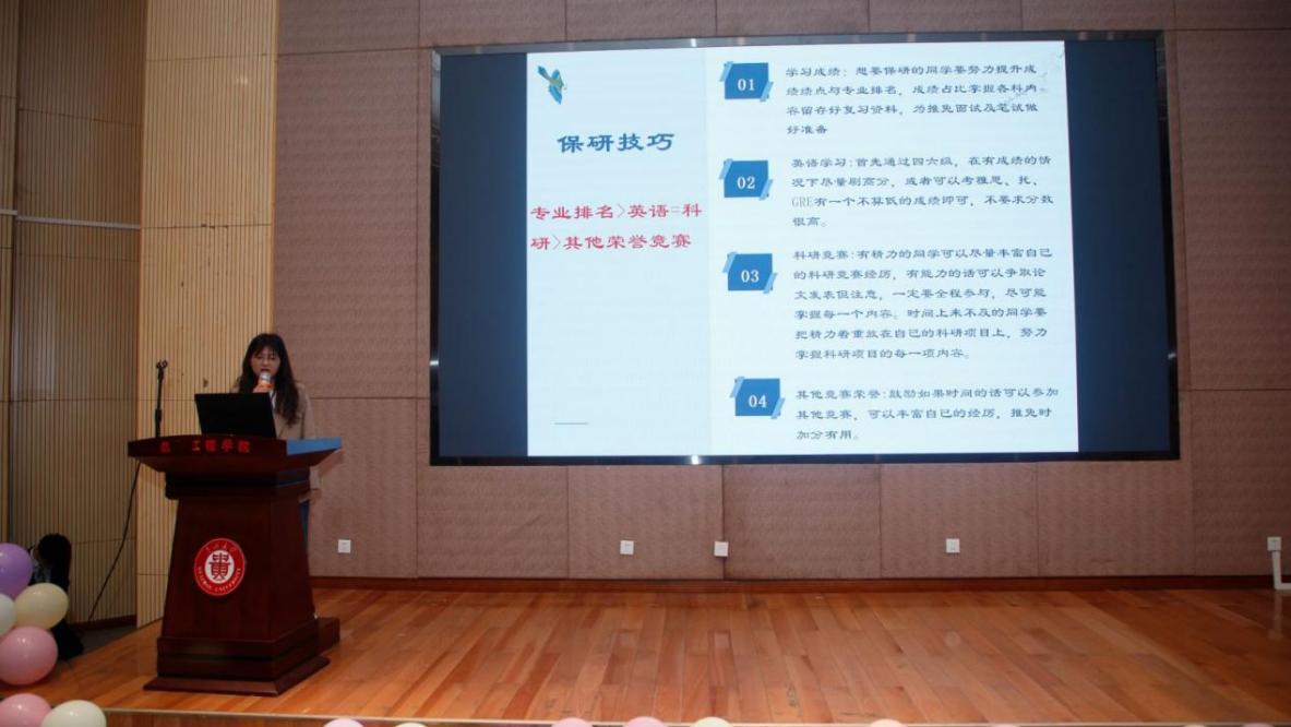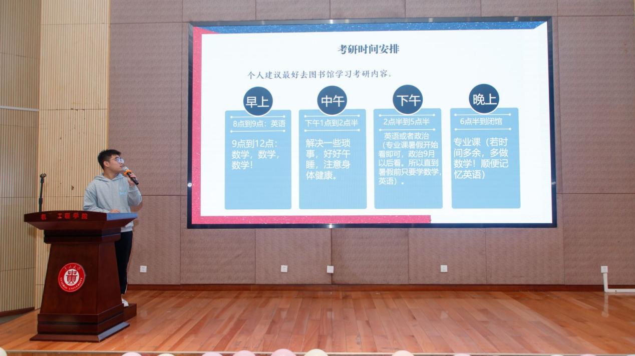 大會邀請材料成型及控制工程系保研學生王倩、考研學生韓池從選擇定位、計劃安排、學習方法等方面作升學經(jīng)驗分享,希望學弟學妹研途不迷茫,持之以恒做好備考準備,全力以赴戰(zhàn)到考研最后一刻。