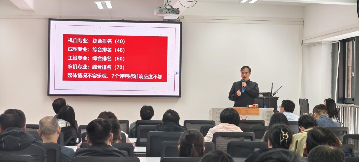 副院長李家春對2024年機(jī)械工程學(xué)院本科教育教學(xué)審核評估自評自建進(jìn)行匯報(bào),強(qiáng)調(diào)要重視本輪教育教學(xué)審核評估的重要性,并對相關(guān)工作進(jìn)行安排。
