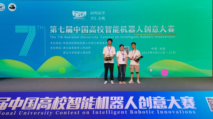 賽場(chǎng)風(fēng)云,蓄勢(shì)待發(fā)。8月21日—22日,由中國(guó)高校智能機(jī)器人大賽組委會(huì)主辦的第七屆中國(guó)高校智能機(jī)器人創(chuàng)意大賽國(guó)賽如約而至。本屆大賽共有27個(gè)?。ㄗ灾螀^(qū)、直轄市),585所高校參與,7000余支隊(duì)伍報(bào)名參加。經(jīng)各省省賽和全國(guó)選拔賽,1347支隊(duì)伍進(jìn)入國(guó)賽,攜上千件作品于浙江省余姚市中塑?chē)?guó)際會(huì)展中心同臺(tái)競(jìng)技。在該競(jìng)技舞臺(tái)上,我校同學(xué)在郭蕊老師和劉勇老師的指導(dǎo)下獲得國(guó)家二等獎(jiǎng)。