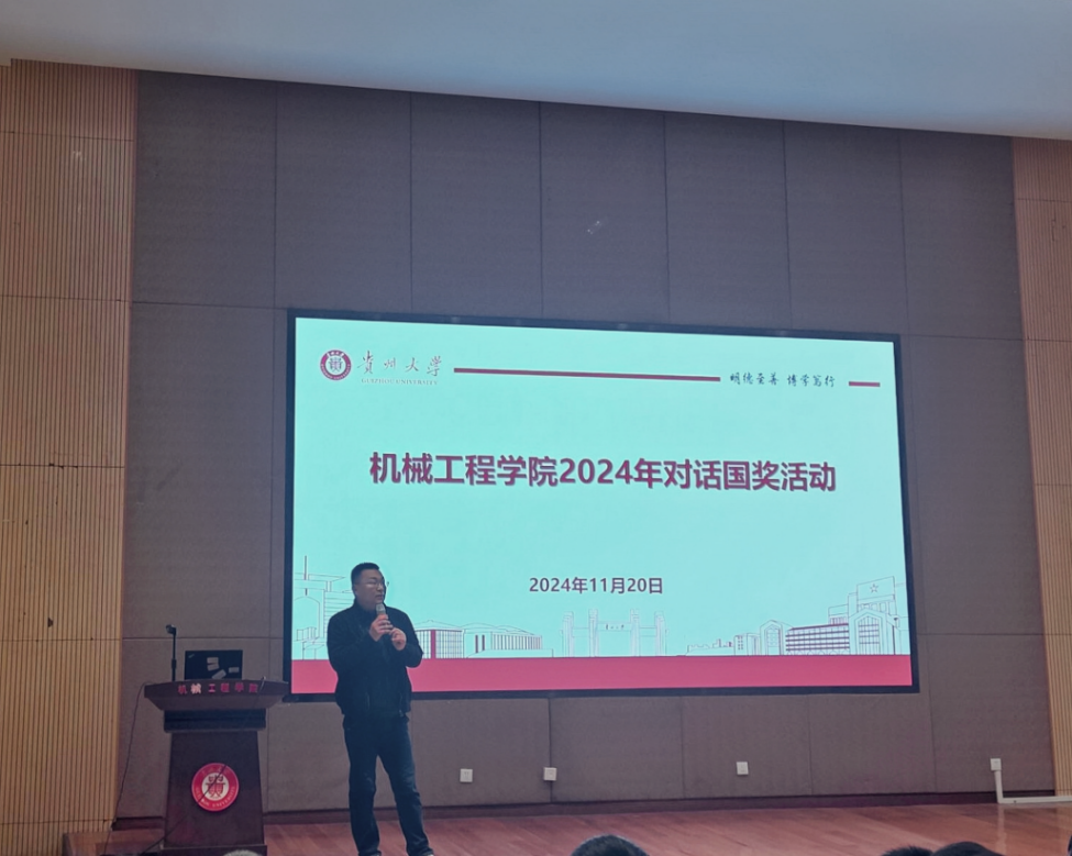 為深入學(xué)習(xí)貫徹黨的二十屆三中全會(huì)精神,加強(qiáng)研究生思想引領(lǐng)與學(xué)風(fēng)建設(shè)。貴州大學(xué)機(jī)械工程學(xué)院于2024年11月20日中午13點(diǎn)在學(xué)院圓形報(bào)告廳舉辦了2024年研究生“對(duì)話國(guó)獎(jiǎng)”主題分享會(huì)。分享會(huì)由研究生科田森老師主持,機(jī)械學(xué)院2023級(jí)、2024級(jí)全體研究生參與活動(dòng)。