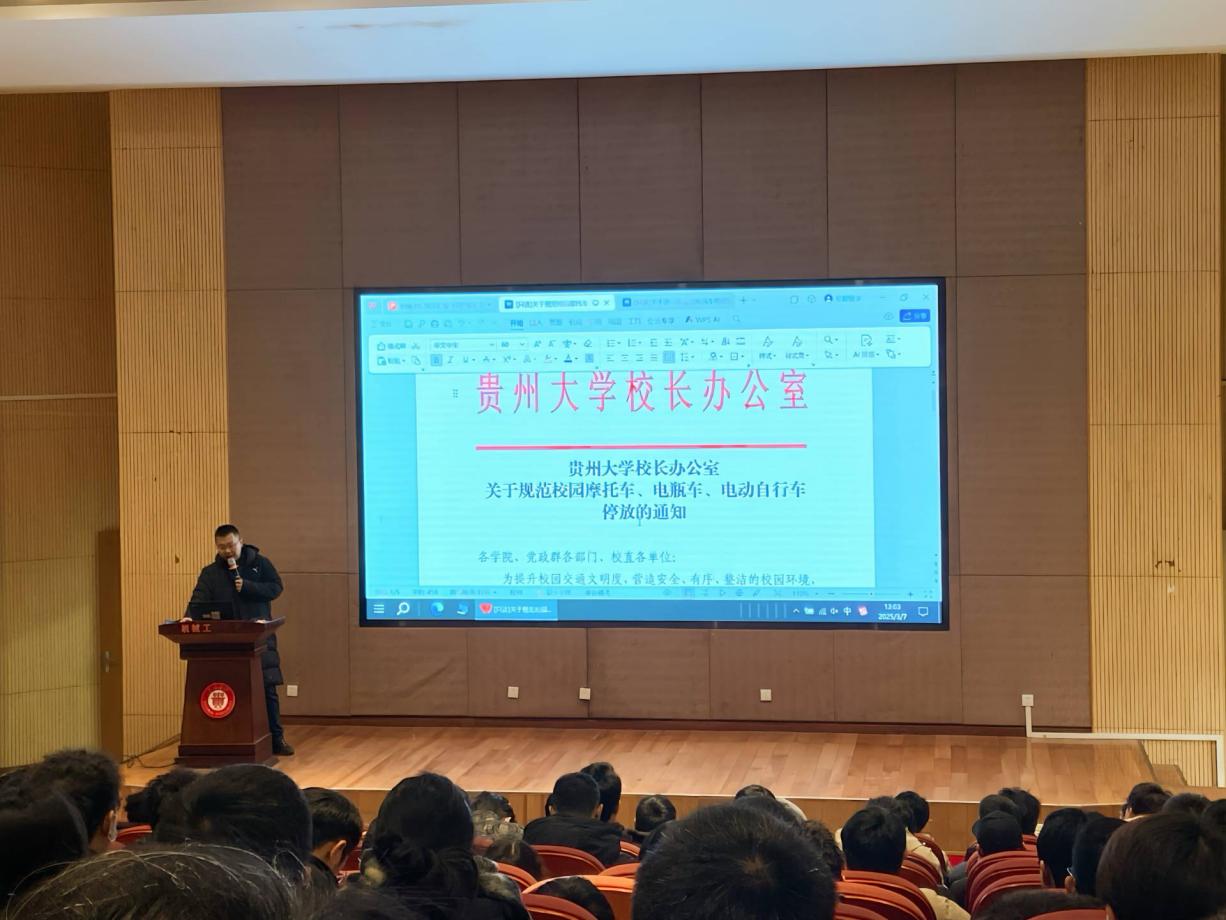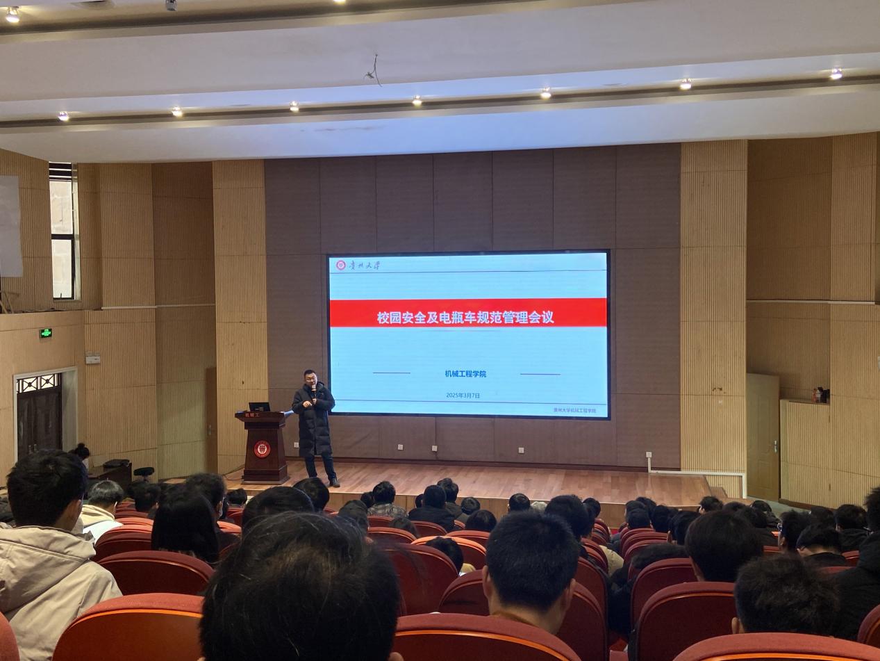 為了加強校園交通文明建設(shè),營造安全、有序、整潔的校園環(huán)境,2025年3月7日下午1點機械工程學(xué)院在學(xué)院圓形報告廳召開了校園安全及電瓶車規(guī)范管理會議,會議由研究生科田森老師主持,全體研究生參加會議。