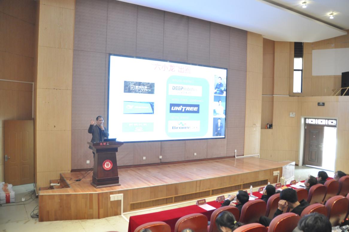 李家春以“杭州六小龍”火爆出圈的例子,一段機(jī)器人在復(fù)雜地形運(yùn)動并做出高難度動作的視頻,引出機(jī)械專業(yè)在未來的發(fā)展前景,隨后以學(xué)院近兩年考研數(shù)據(jù)的對比,向同學(xué)們強(qiáng)調(diào)選修博學(xué)數(shù)學(xué)、英語的重要性,鼓勵動員同學(xué)積極備考升學(xué),選修學(xué)校組織開展的博學(xué)英語、數(shù)學(xué)課。