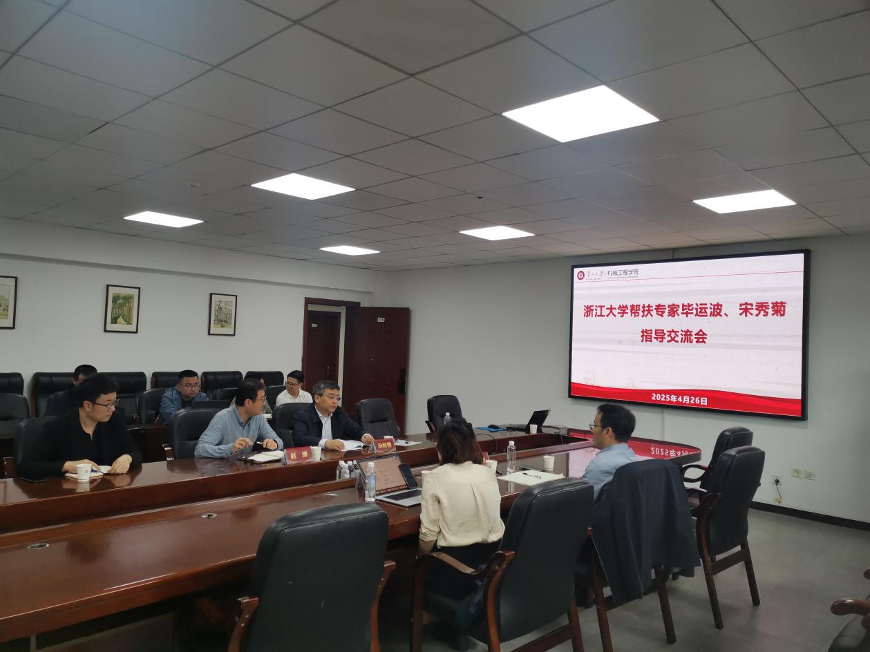 為深入貫徹落實省委省政府關(guān)于深化東西部協(xié)作和新時代高校對口幫扶工作的重要指示精神,2025年4月26日下午,浙江大學機械工程學院對口幫扶專家畢運波教授、宋秀菊研究員一行赴貴州大學機械工程學院開展指導交流?;顒佑少F州大學機械工程學院黨委書記趙津主持,浙江大學幫扶專家組組長、國家級人才稱號獲得者馮毅雄及學院青年教師代表吳家柱、汪???、杜昊、漆令飛、陳躍威等10余人參與座談交流。